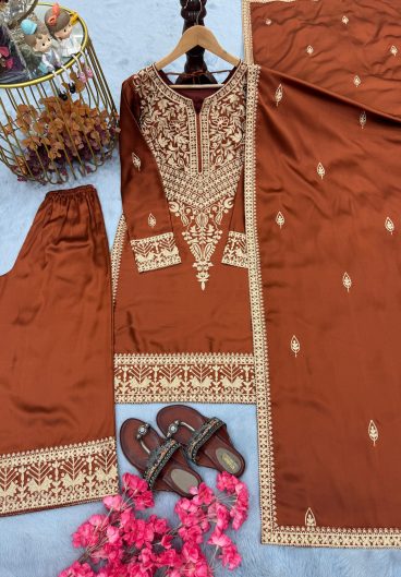 New Designer Party Wear Look Heavy Roman silk Top Bottom & Dupatta Set