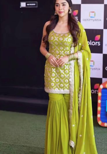 New Designer Party Wear Look Heavy Natural Crep Silk With Sequence Multi Needle Embroidery Worktop with farshi salwar