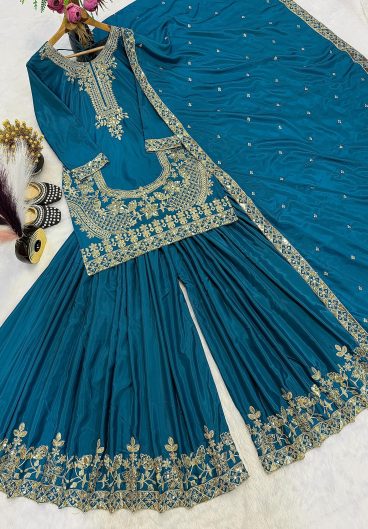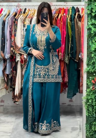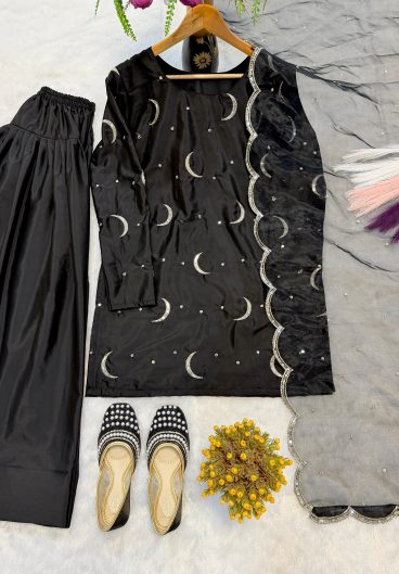 Pure Heavy Chinnon Silk With Heavy Embroidery Sequence Work With Full Embroidery Sleeve Salwar Kameez