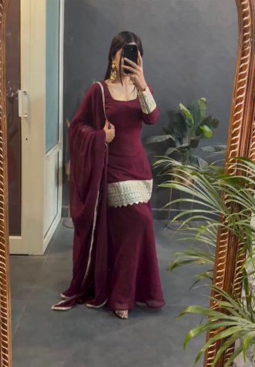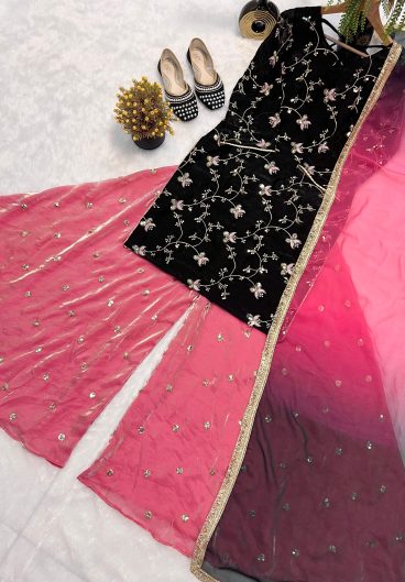 New Designer Party Wear Look Stitched Top Farshi Salwar and Dupatta