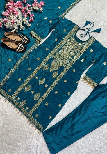 New Designer Party Wear Look heavy Japan Satin Material with Embroidery sequence work top with farshi salwar