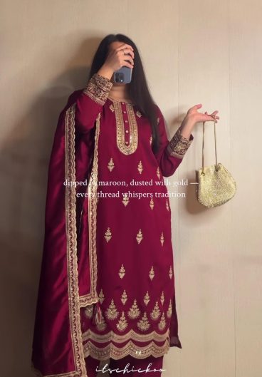 Pure Heavy Chinnon Silk With Heavy Embroidery Coding Sequence Work