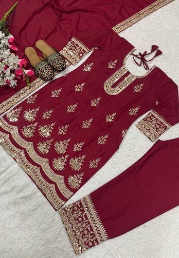 Heavy Natural Crep Silk Material With 5mm Sequence Embroidery Work Party Wear Look Top pent & Dupatta