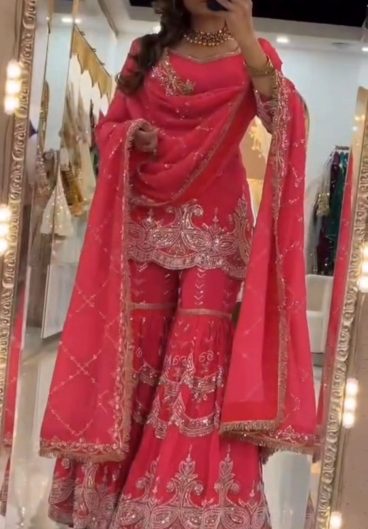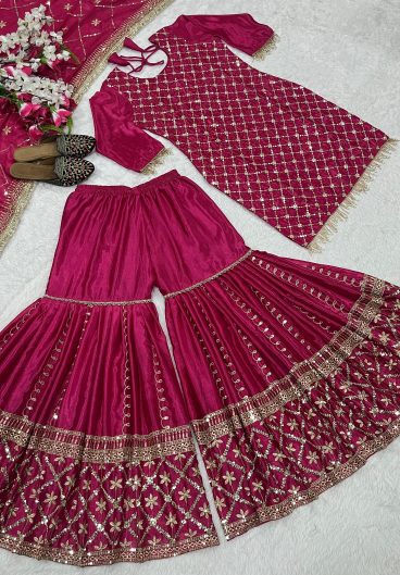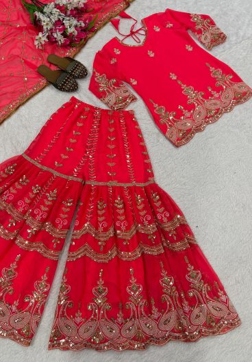 New Designer Party Wear Heavy chinnon Silk Material With 5mm Sequence Embroidery Work Top Sharara Plazzo & Dupatta