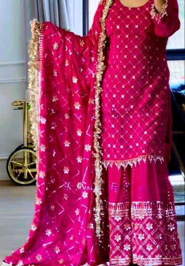 New Designer Party Wear Look Heavy Chinnon Silk Material With 5mm Sequence Embroidery Work Top Sharara Plazzo & Dupatta