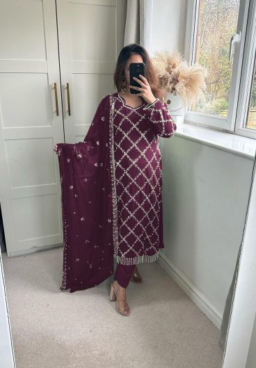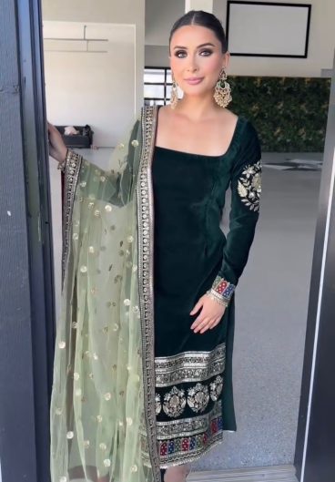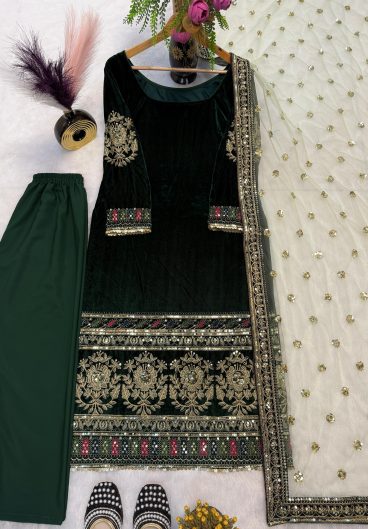 Pure Heavy Viscous Velvet With Heavy Embroidery Multi Needle Sequence Work Salwar Kameez