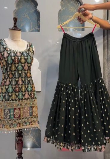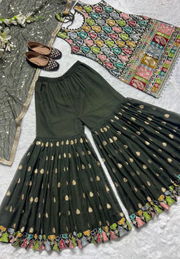 Heavy Fandy Crushi Silk Material With 5mm Sequence Embroidery Work Party Wear Look Top Sharara Plazzo & Dupatta