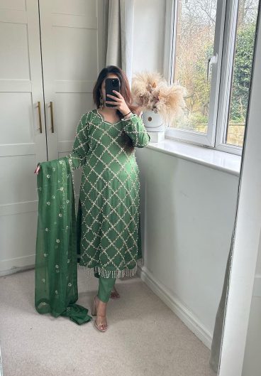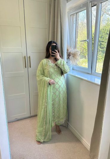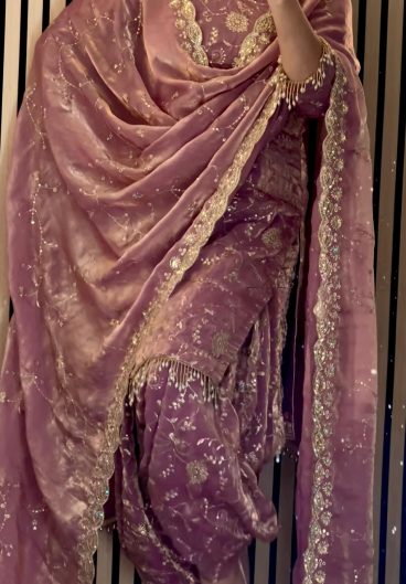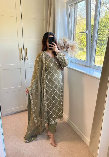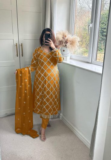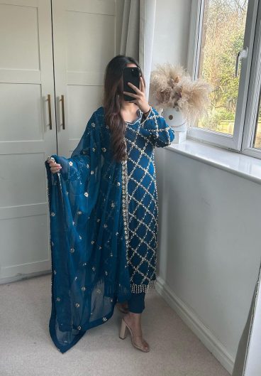 Heavy Faux Georgette With Heavy 3mm Embroidery Sequence Work With Full Sleeve With Latkan Dori Salwar Kameez