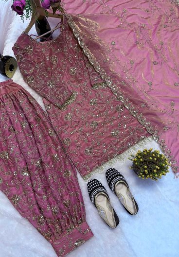 Pure Heavy Chinnon Silk With Heavy Embroidery Coding Sequence Work With Full Embroidery Sleeve Salwar Kameez