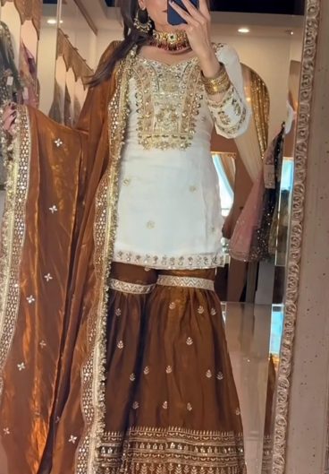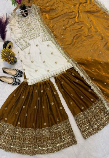 New Designer Party Wear Look Heavy chinnon Silk Material With 5mm Sequence Embroidery Work Top Sharara Plazzo & Dupatta