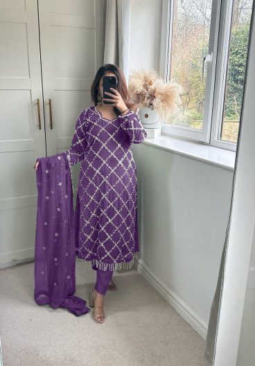 Pure Heavy Chinnon Silk With Heavy Embroidery Coding Sequence Work Salwar Kameez