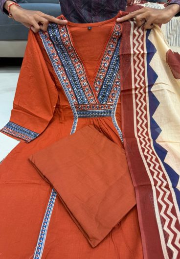 Beautiful Suit Sets in Pure Cotton 60 60 Suit Set Top pent with dupatta with Fully Handwork Nack