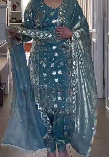 Pure Heavy Chinnon Silk With Heavy Embroidery Coding Sequence Work With Full Embroidery Sleeve Salwar Kameez
