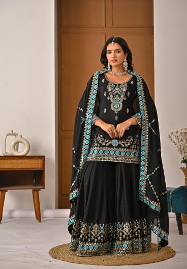 Pure Heavy Chinnon Silk With Heavy Embroidery Coding Sequence Work Sharara Top