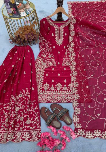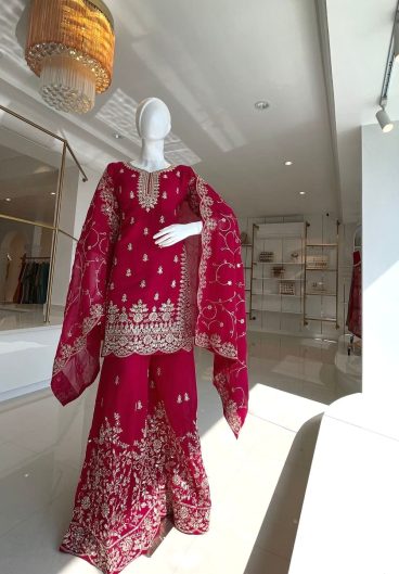New Designer Party Wear Look Pure GMY SILK Top Plazzo & Dupatta Set