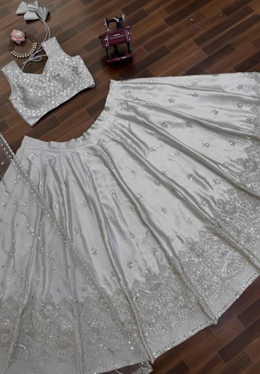Semi-Stitch Satin silk thread with Sequence work Lehenga Choli