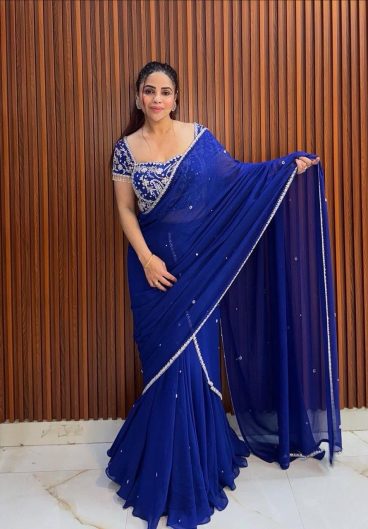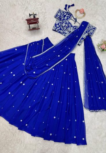 Faux Georgette with thread with Sequence work Blue Lehenga Choli