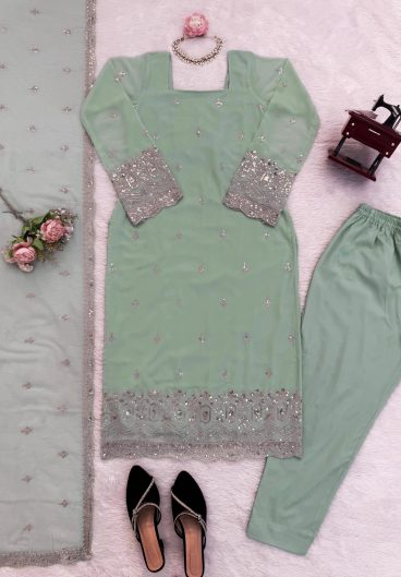 Faux Georgette thread with Sequence work Ready to wear Salwar Kameez
