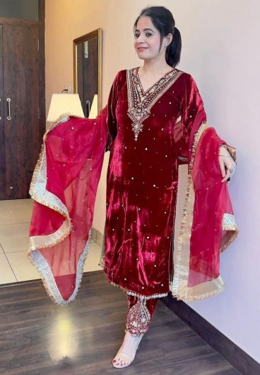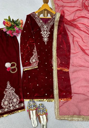 Visocs Velvet with Thread with Sequence work Ready to wear Salwar Kameez