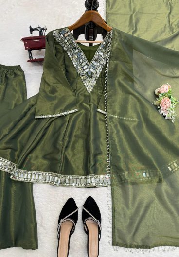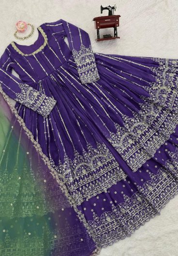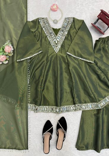 Beautiful Chinon silk with Lining Soft Micro Cotton Work Sequnce with thread salwar Kameez