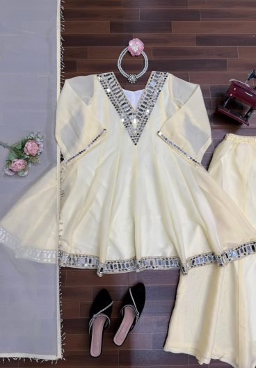 EXCLUSIVE 3 PIECE PLAZZO PAIR WITH REAL MIRROR AND EMBROIDERY WORK