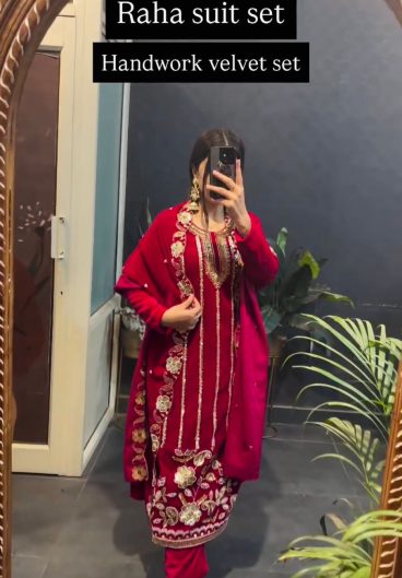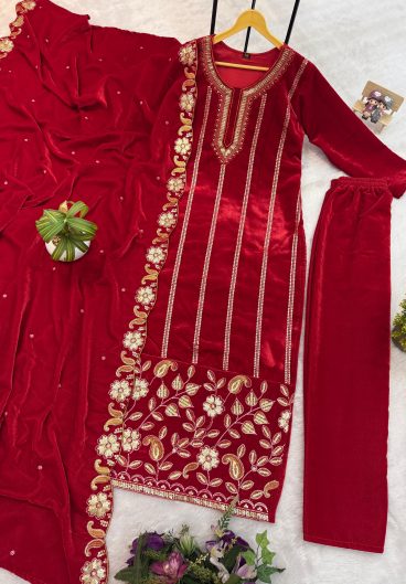 3 PIECE EMBROIDERED SUIT ON VELVET FABRIC WITH HEAVY WORK