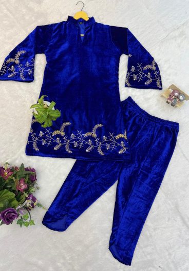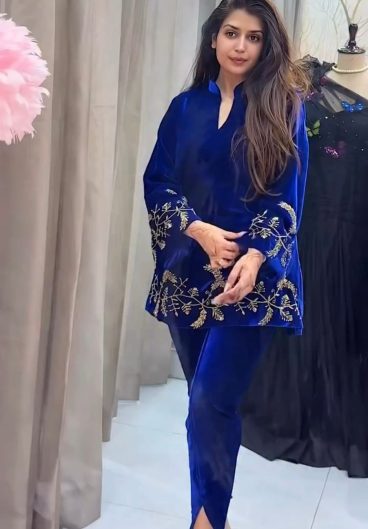 EXCLUSIVE EMBROIDERED CO-ORD SET ON VELVET FABRIC WITH WORK