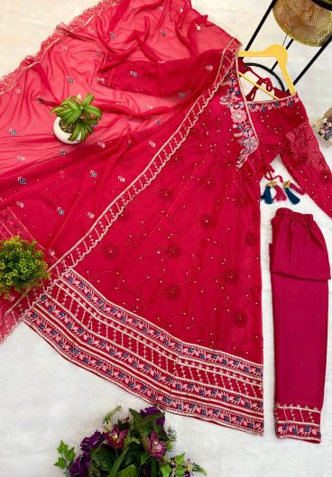 NEW SUPERHIT TRENDING FESTIVE KURTI PENT & DUPATTA SET WITH EMBROIDERY WORK ON FAUX GEORGETTE FABRIC