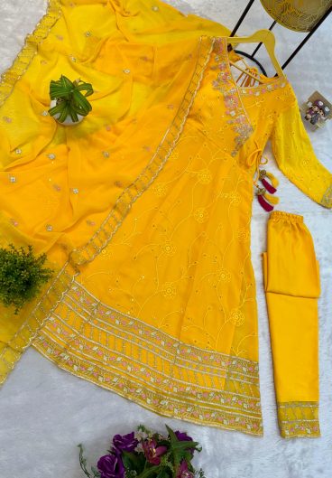 SUPERHIT TRENDING GOWN & DUPATTA SET WITH FULL EMBROIDERY WORK ON CHINON FABRIC
