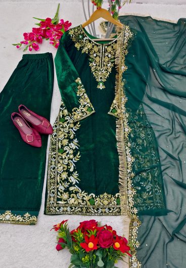 Heavy Pure 9thoujent Viscous Velvet With 5mm Siqwans Embroidery Work Salwar Kameez