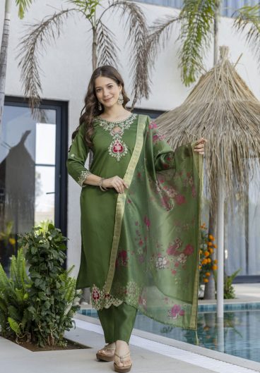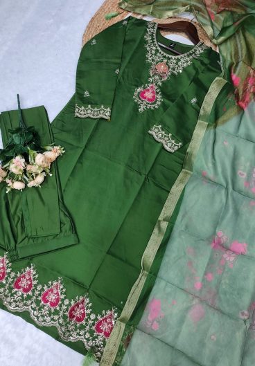 Festive & Party Wear Viscous Chanderi With Embroidery Work Top bottom Dupatta Set