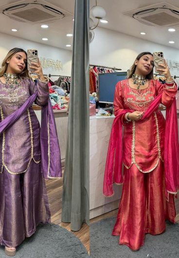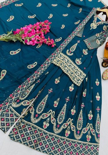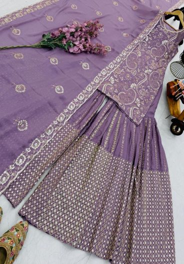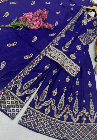 New Designer Party Heavy Chinon Silk with Sequence Embroidery Top Sharara & Dupatta Set