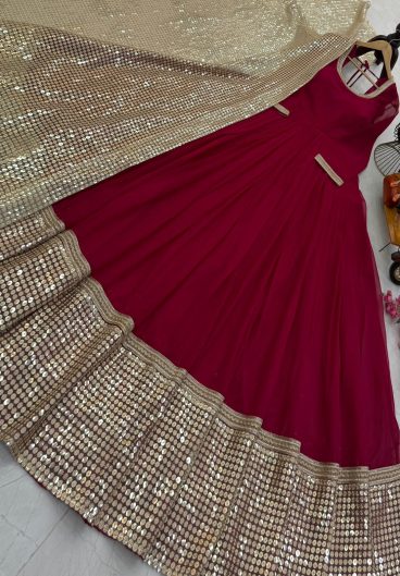 Heavy Velvet with Embroidery Sequence work 5mtr Gown Dupatta set