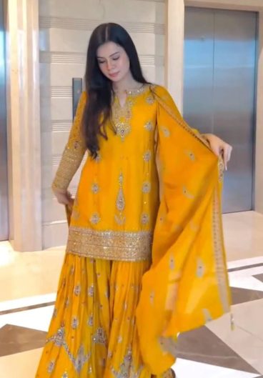 New Designer Chinon Silk Party Sharara Suit & Dupatta Set
