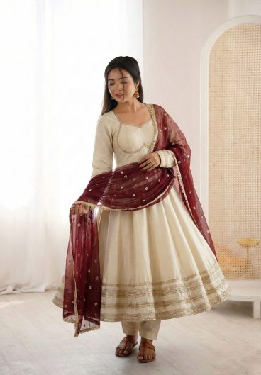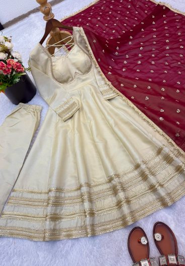 New Designer Party Wear Look Gown Bottom and Dupatta in Fully Kali Flair With Attached Pad
