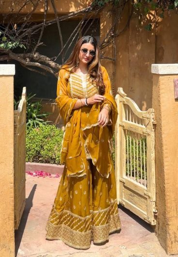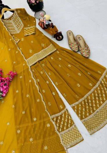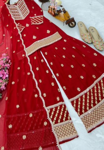 New Designer Party Chinon Silk With Embroidery Sequence Work Sharara Suit & Dupatta Set