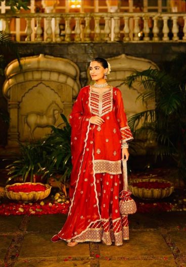 New Designer Natural Crep Silk Top-Bottom And Dupatta Set Fully Stitched