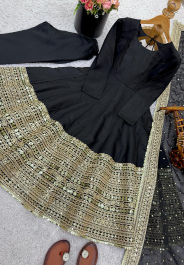 Heavy Fox Georgette With Embroidery Sequence Work With Fully Flair Fully Stitched Salwar Kameez