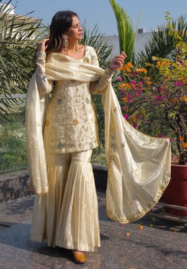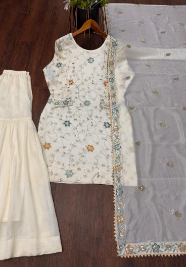 Fox Georgette With Embroidery Work Top Sharara Plazzo Dupatta Set