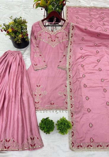 Heavy Pure Chinnon With Embroidery Sequence Work Fully Stitched Salwar Kameez