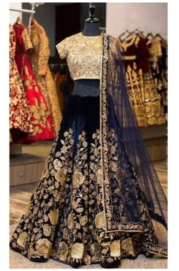 DESIGNER WEAR EMBROIDERED VELVET LEHENGA CHOLI