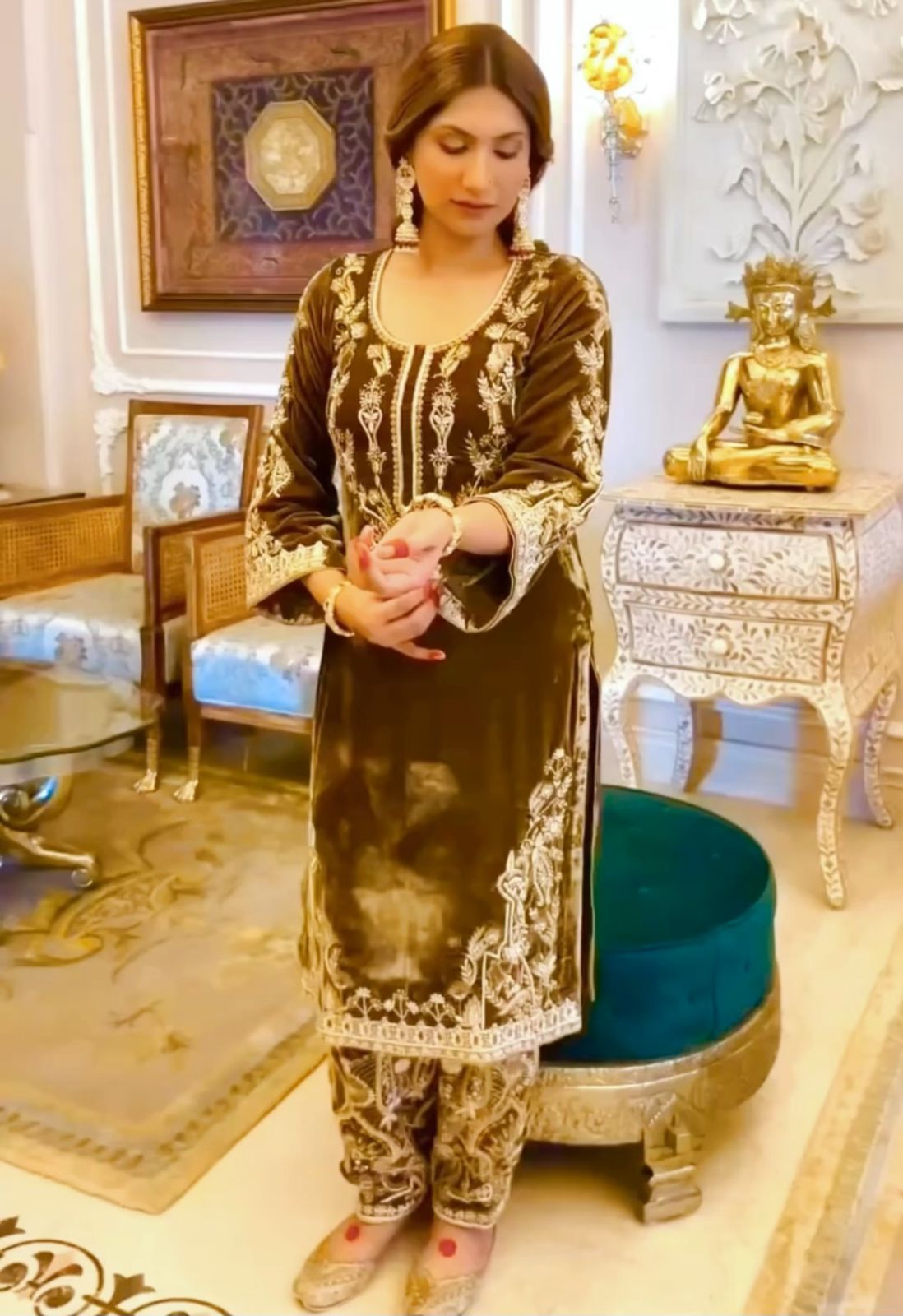 *Bottom Fabric*:- pure Viscose Velvet Silk Fabric Pant with 40 Inch Length (Fully stitched)