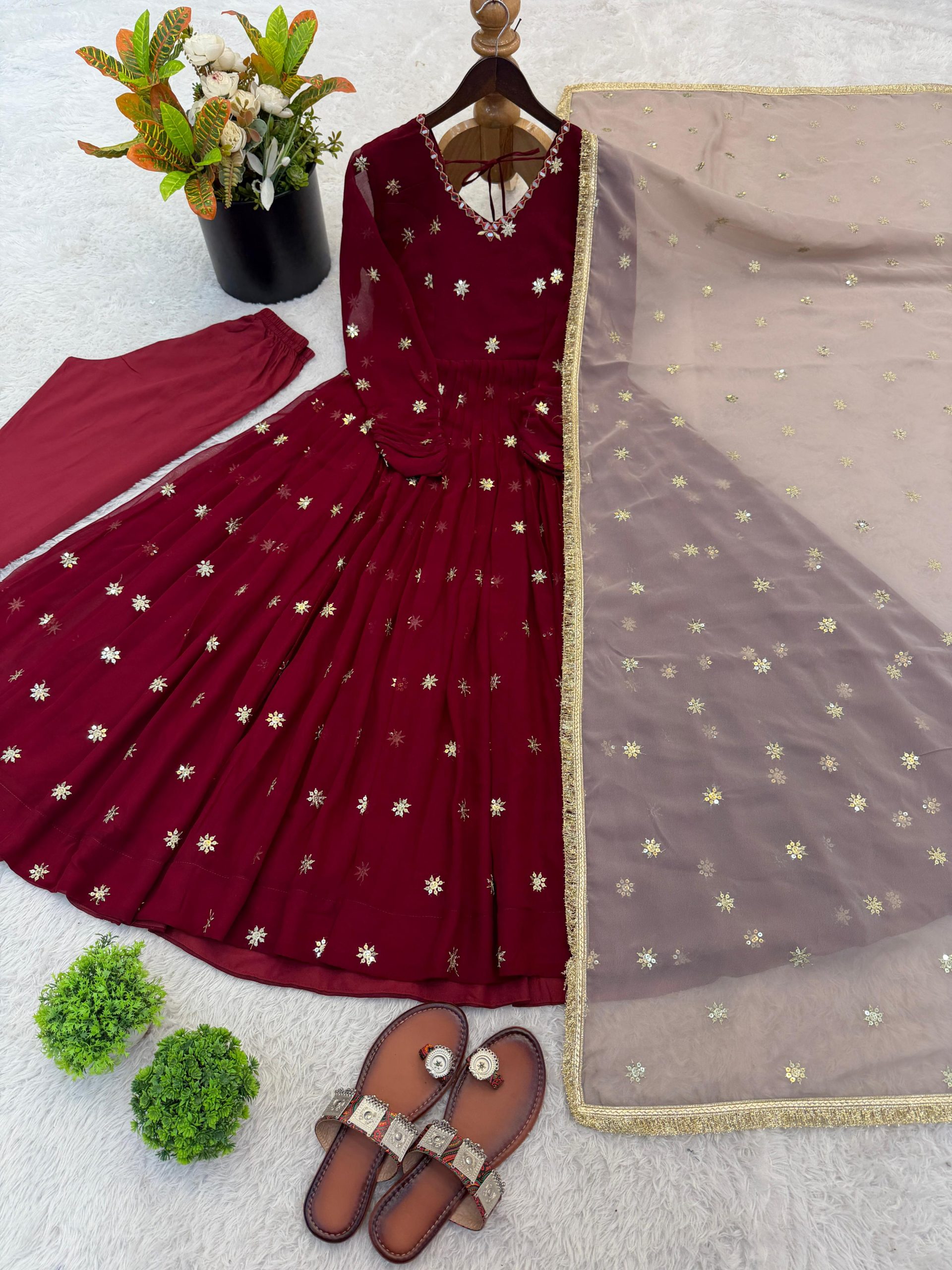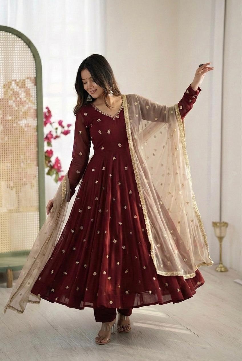 *Top Fabric* :Heavy Faux Georgette With Embroidery Work With Fancy Full Sleeve