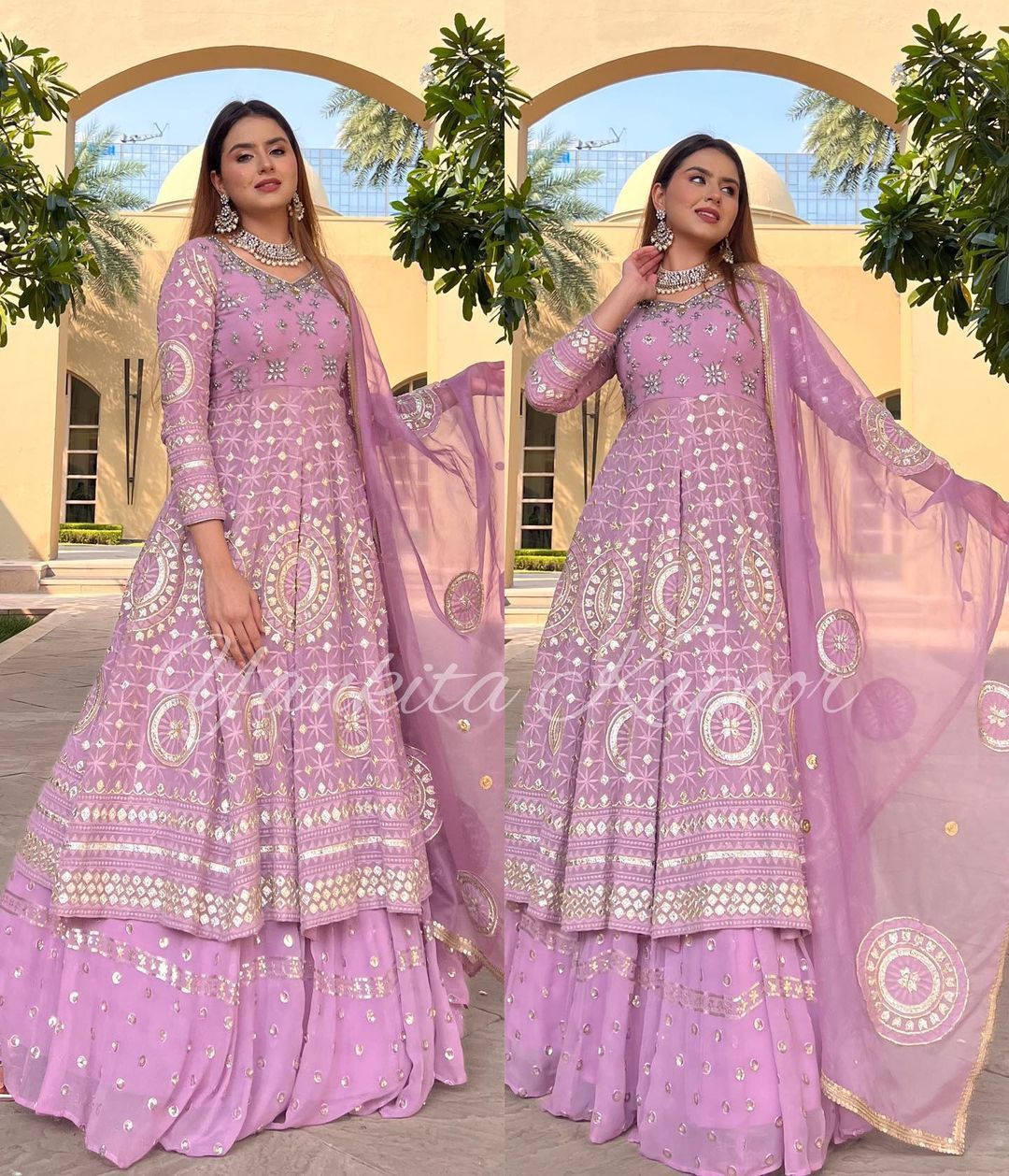 *Top Fabric * :Faux Georgette With *Heavy Embroidery 5 mm Sequence Work* With Sleeve With Attached pad and Latkan Dori