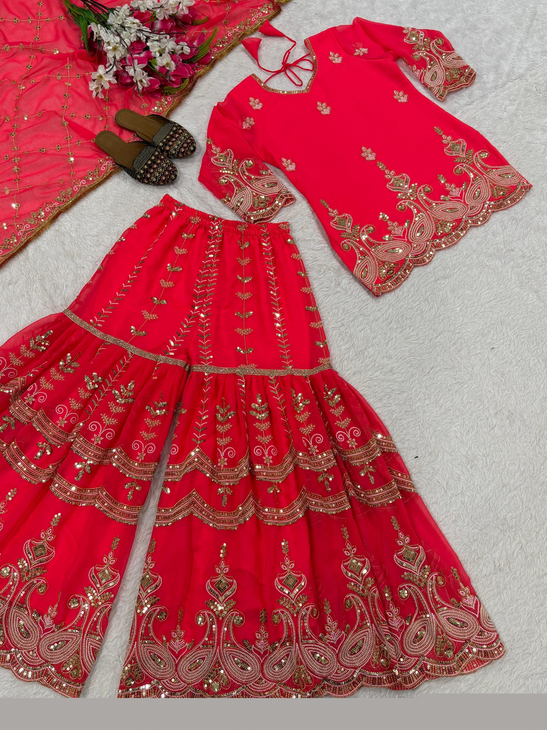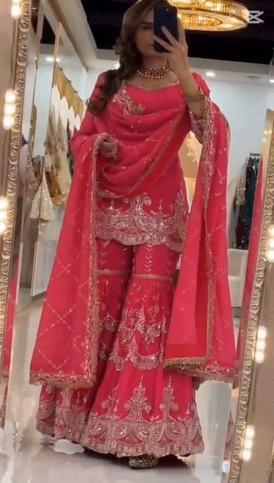 *Sharara Palazzo* : – *Heavy Fox Georgette Silk Material 5mm Sequence And Embroidery Work*