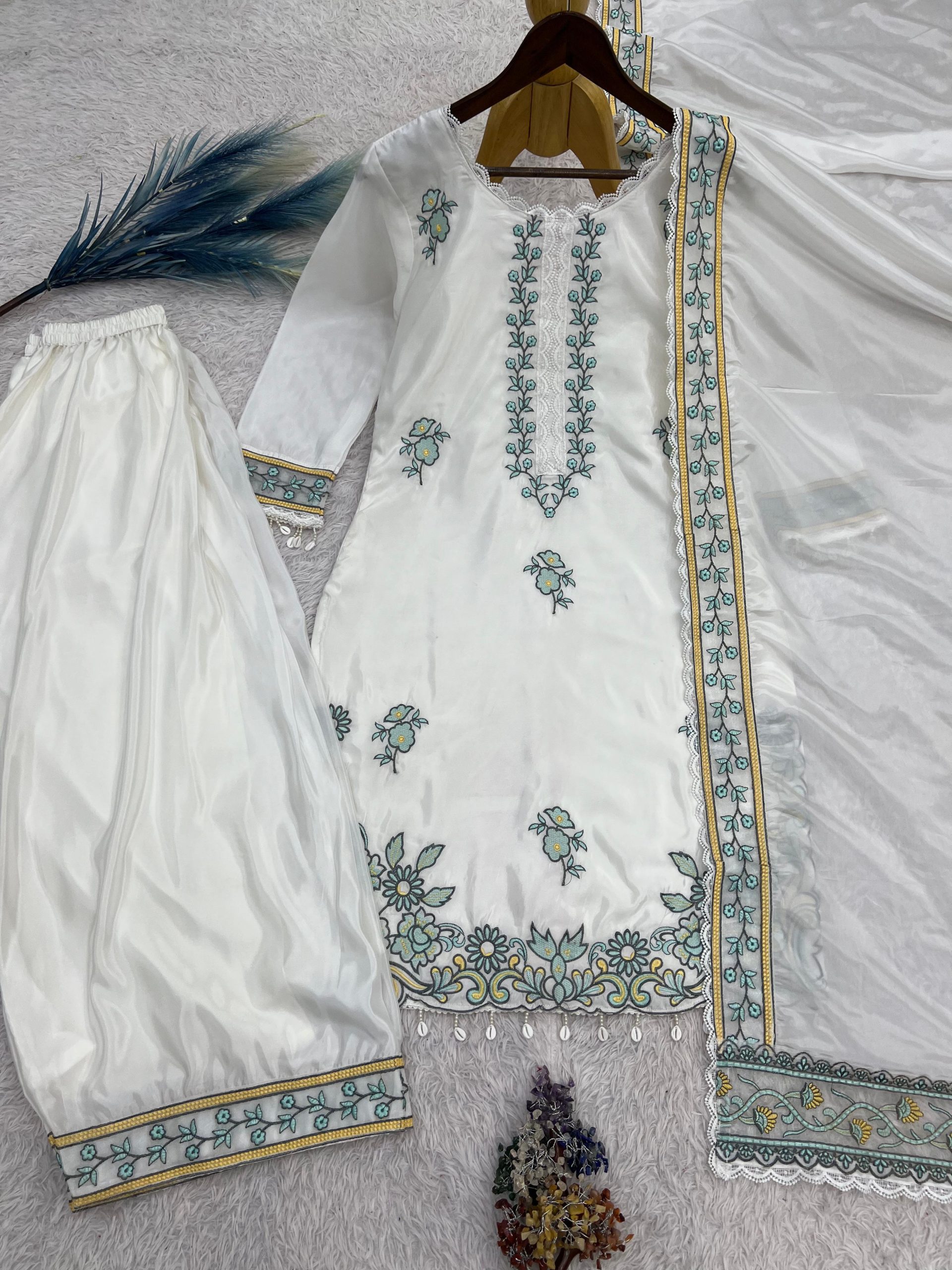 *Salwar Fabrics* :*Premium HO Silk With Embroidery Thread Work And Elastic*