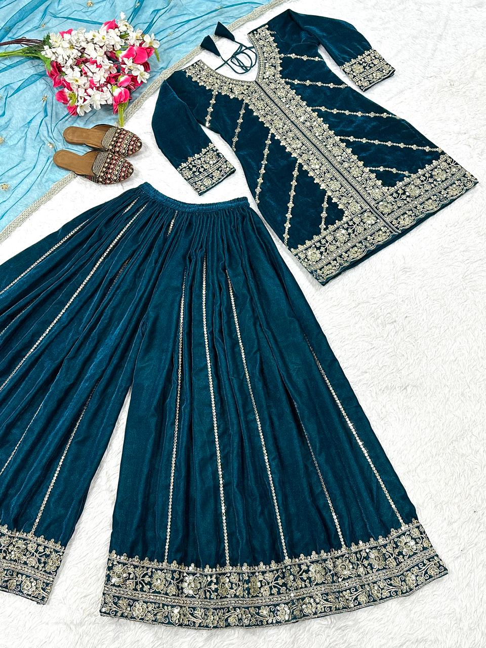 *Sharara Palazzo* : pure heavy viscous velvet with Embroidery Sequence Work.