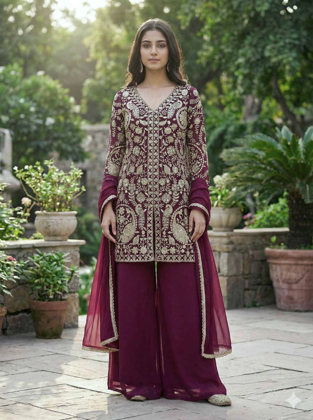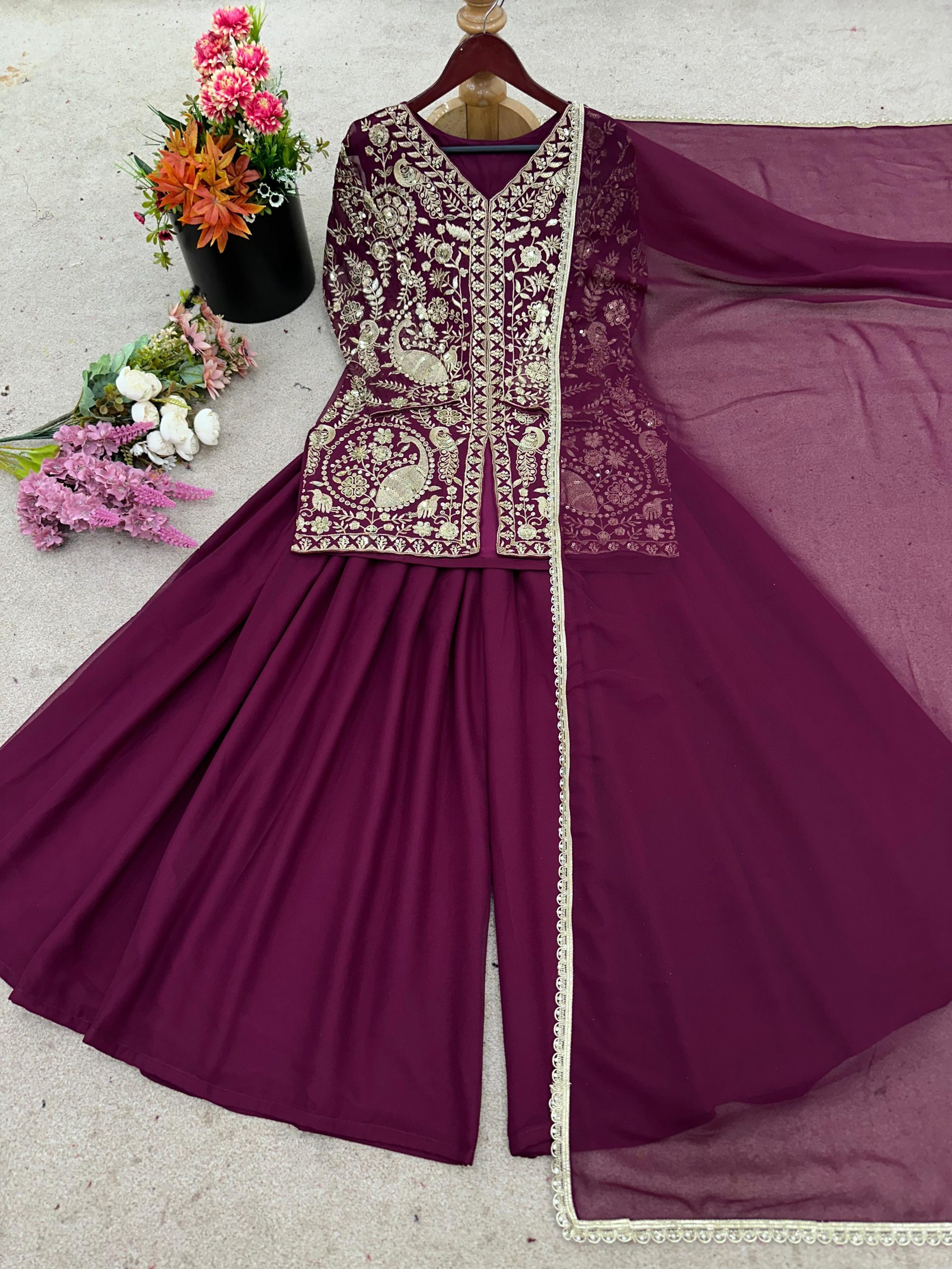 *Top Fabric* :Heavy Faux Georgette With Heavy Embroidery Sequence Work With Sleeves