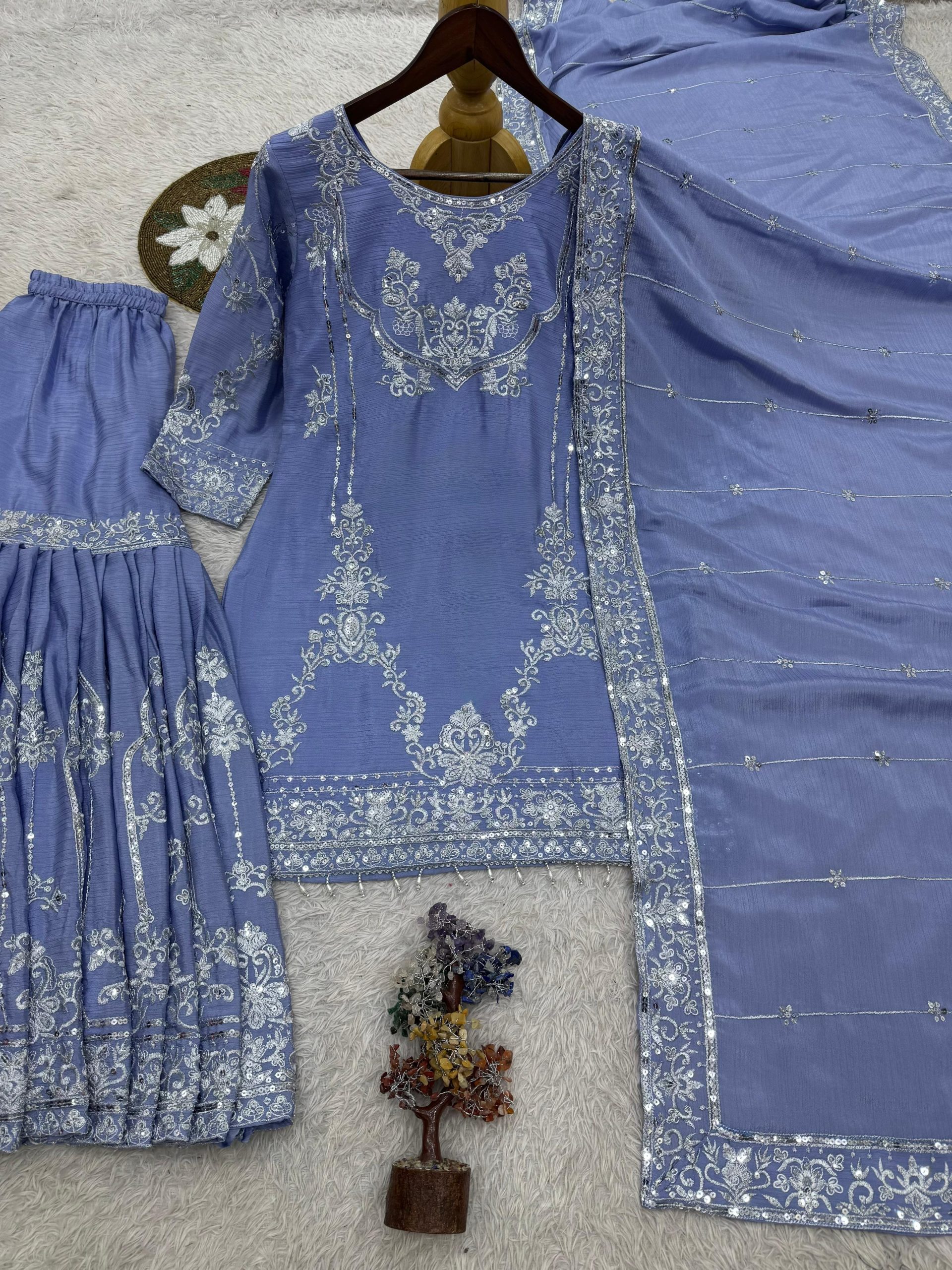 NEW TRENDING 3 PIECE FANCY KURTI WITH SHARARA AND BEAUTIFUL DUPATTA
