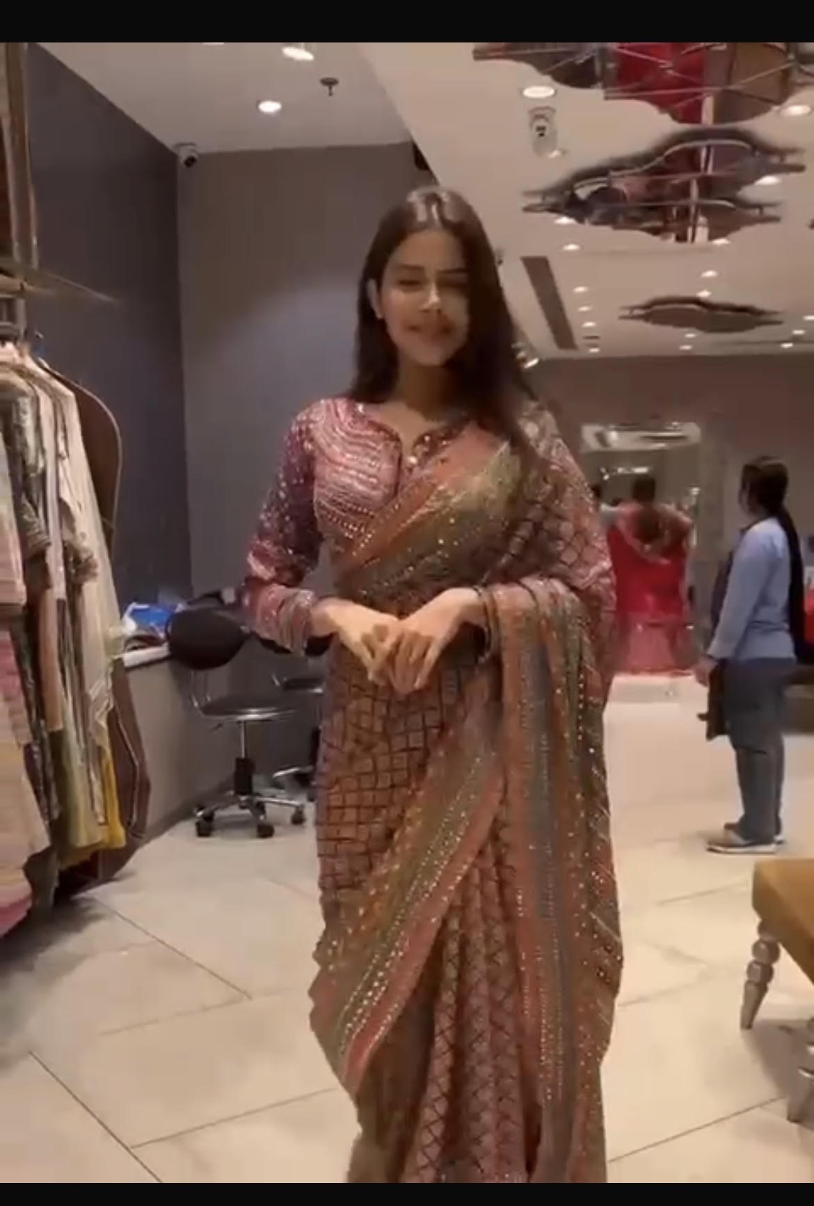 Saree : *Premium Chinon Silk With Beautiful Print And With Beautiful Real Mirror Work All Over*